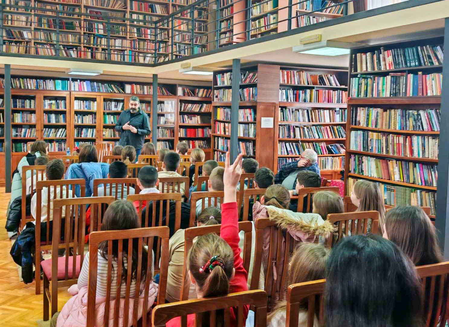 Гост библиотеке био је писац за децу Златко Васић, Апатинац рођен 1973. године, који је са малим читаоцима поделио свет својих књига и показао им како приче настају — тихо, из једне реченице, из једног питања, понекад и из обичног доживљаја који се претвори у авантуру. У разговору са децом није било „предавања“: било је оног ретког осећаја кад деца схвате да је њихова радозналост важна и да је лепо кад неко одрасли уме да је прати.