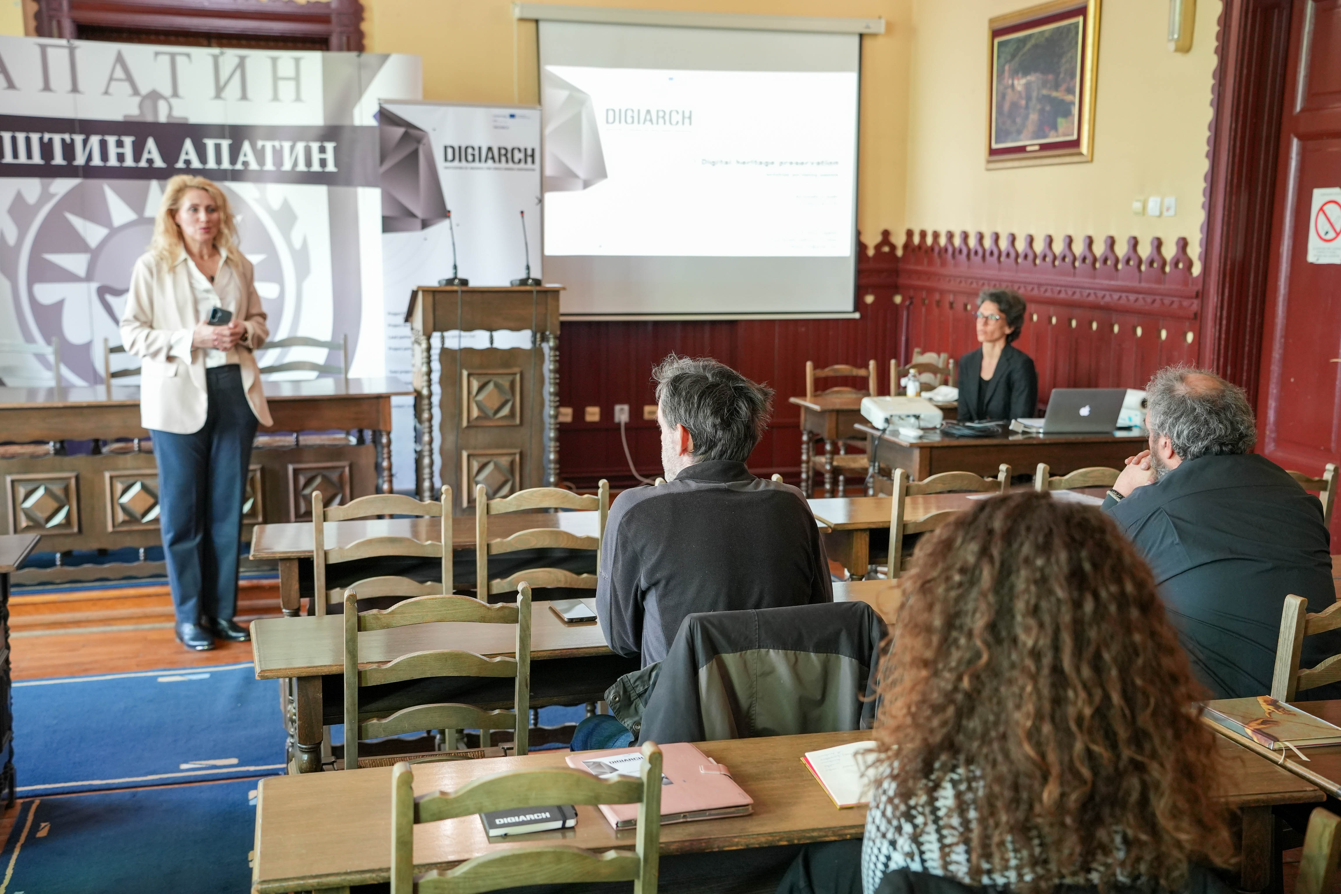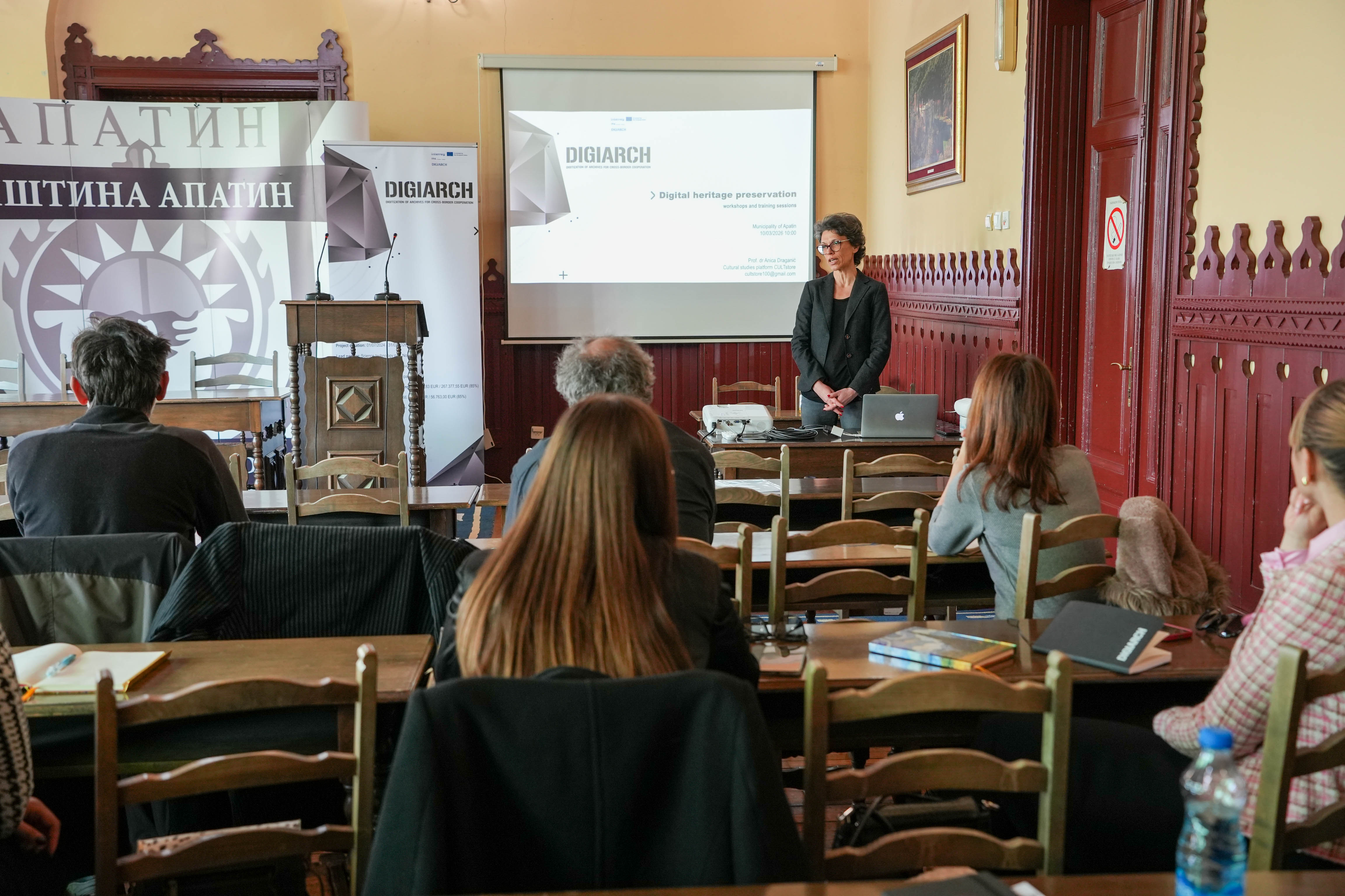 У великој сали Скупштине општине Апатин одржана је едукативна радионица у оквиру ЕУ пројекта DIGIARCH, чији је партнер и Општина Апатин. Радионица је окупила представнике локалних институција, културне раднике и заинтересоване грађане, са циљем упознавања са савременим приступима дигитализацији и очувању културног и индустријског наслеђа.