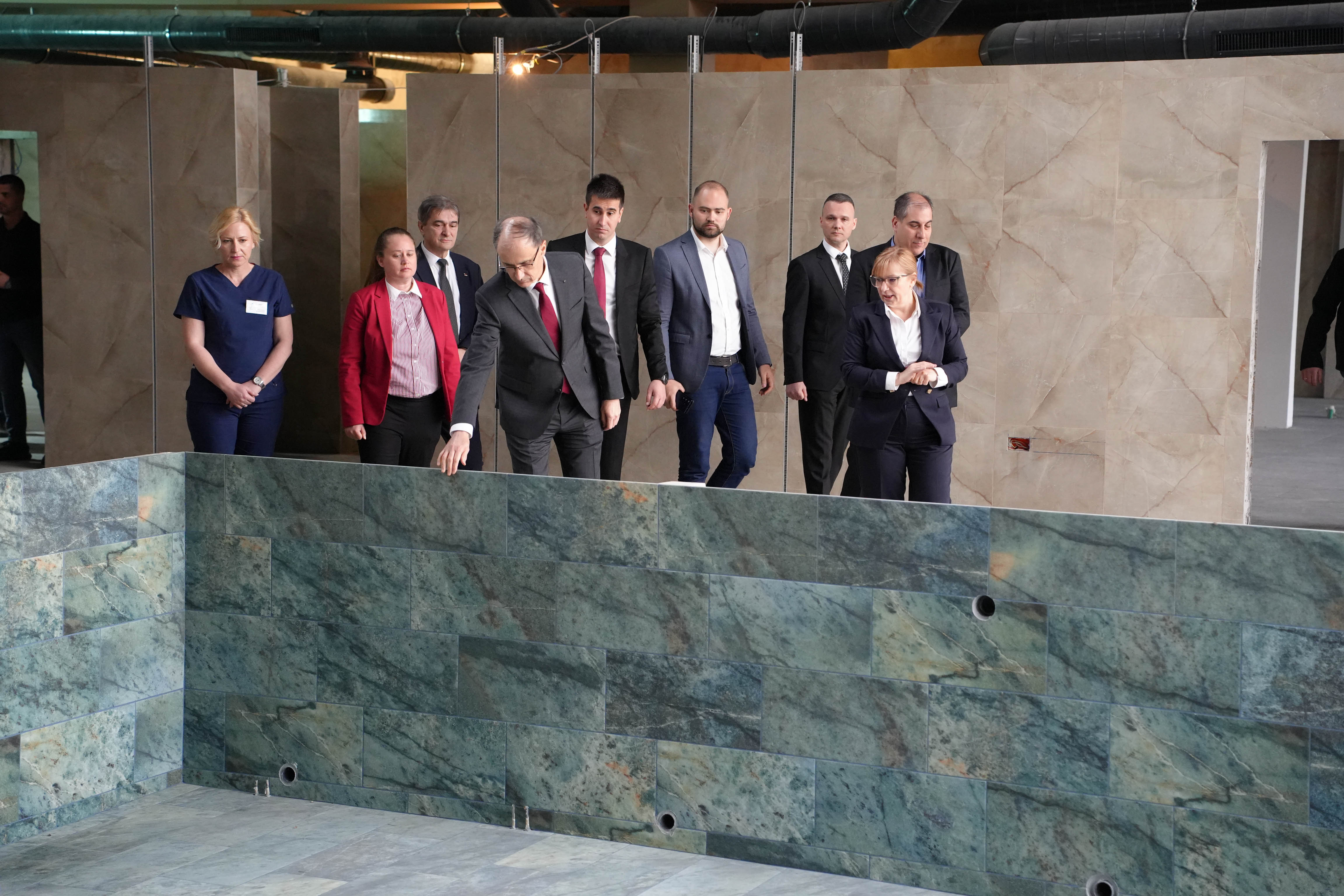 Након састанка, уприличен је обилазак радова који се тренутно изводе на реконструкцији хидро блока, као и објеката и садржаја који су већ приведени намени. Делегација је том приликом обишла кинези салу, електротерапијски део, просторију за спа, као и једну од уређених соба, које су у претходном периоду унапређене у складу са савременим стандардима.