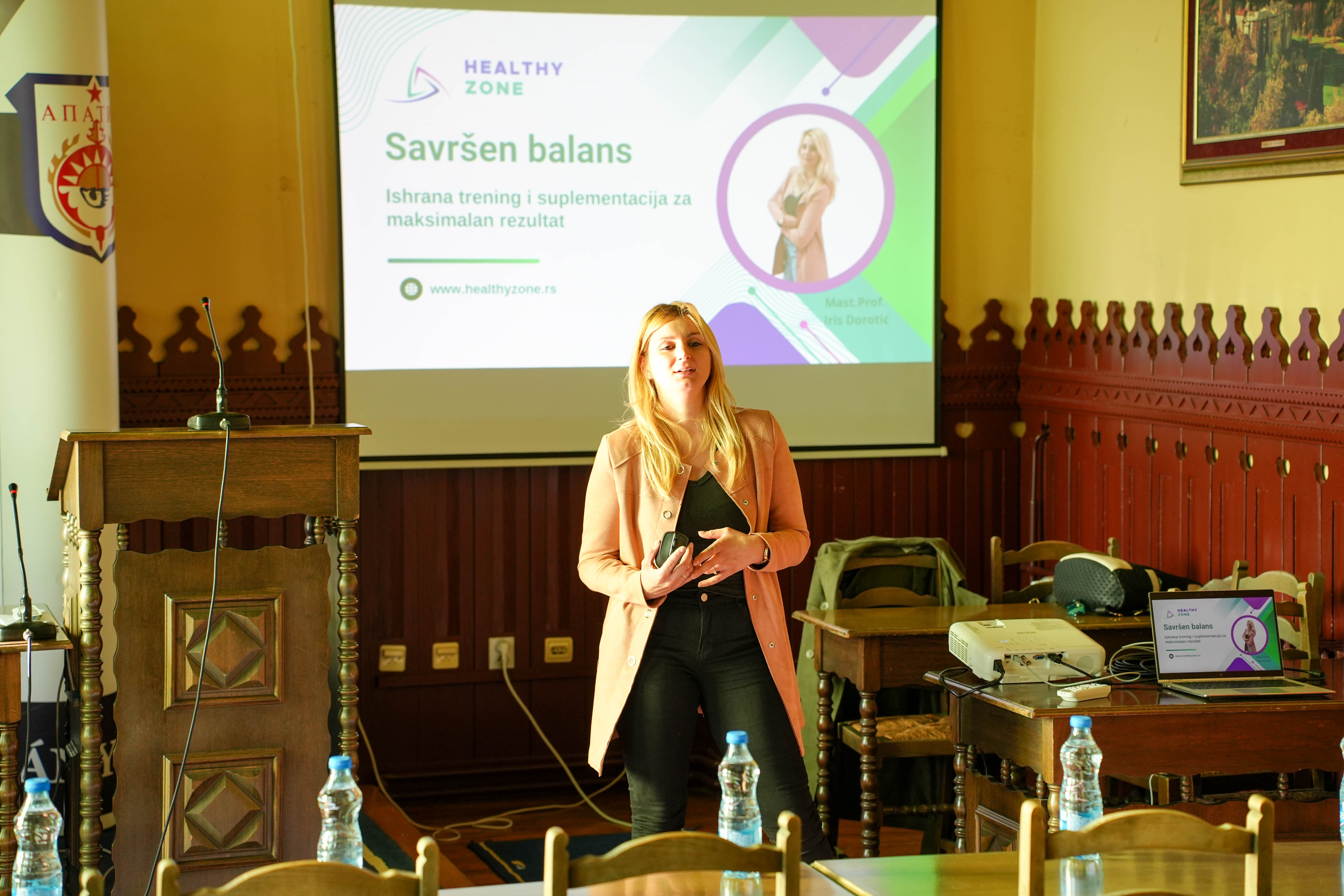 Предавање је одржала Ирис Доротић, мастер професор физичког васпитања, спорта и психологије, која је апатинским спортистима и тренерима пренела своја искуства и знања о одржавању равнотеже тела и ума кроз исхрану, тренинг и мотивацију.